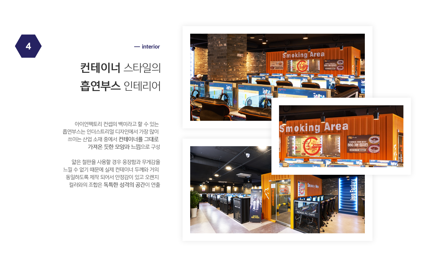 아이언팩토리 interior는 디자인 전문가들이 vintage&industrial interior를 Mix&match하여 기존PC카페 마감재들과는 다르게 최고급 마감재를 사용하여 PC방 인테리어를 고급화